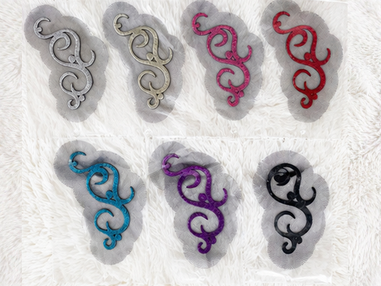 【商品説明】 モチーフに黒のチュールを付着加工しており、そのままアメピンで装着していただけるタイプの髪飾りです。