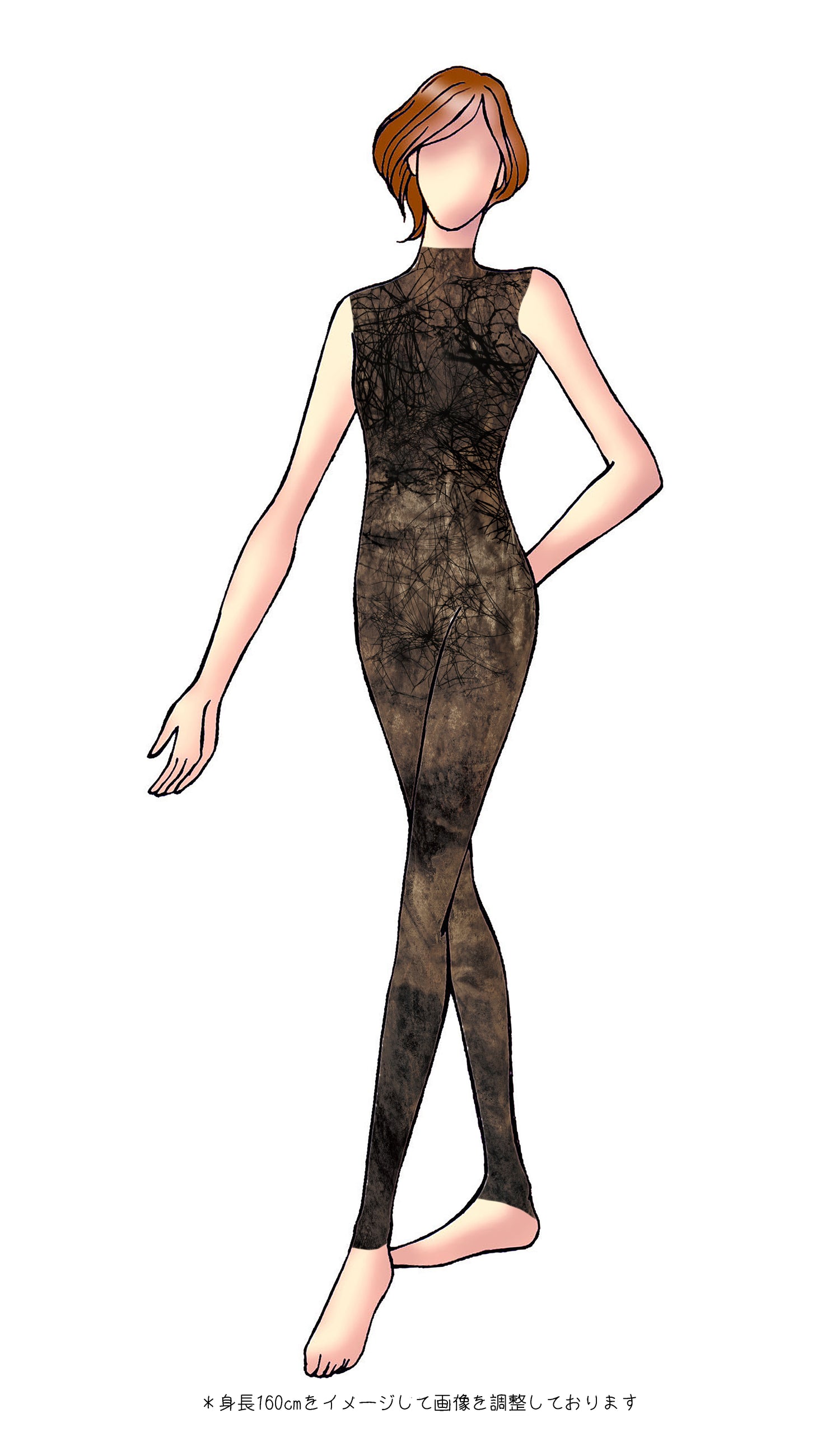 生地幅(横地145cm巾)に蜘蛛の巣の柄を張り巡らせたようなパターングラデーションをプリントしています。 レオタードでもユニタードでも全身にたっぷりグラデーションの魅力を堪能して頂けるアイテムです。