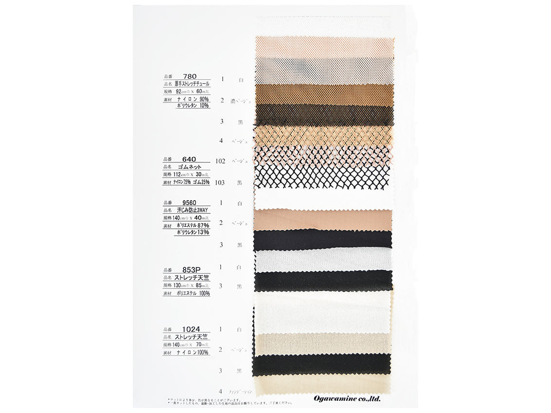 よく伸びるネット状のゴムです。網タイツのイメージとなります。色はc/#102ベージュ・c/#103黒の2色展開です。